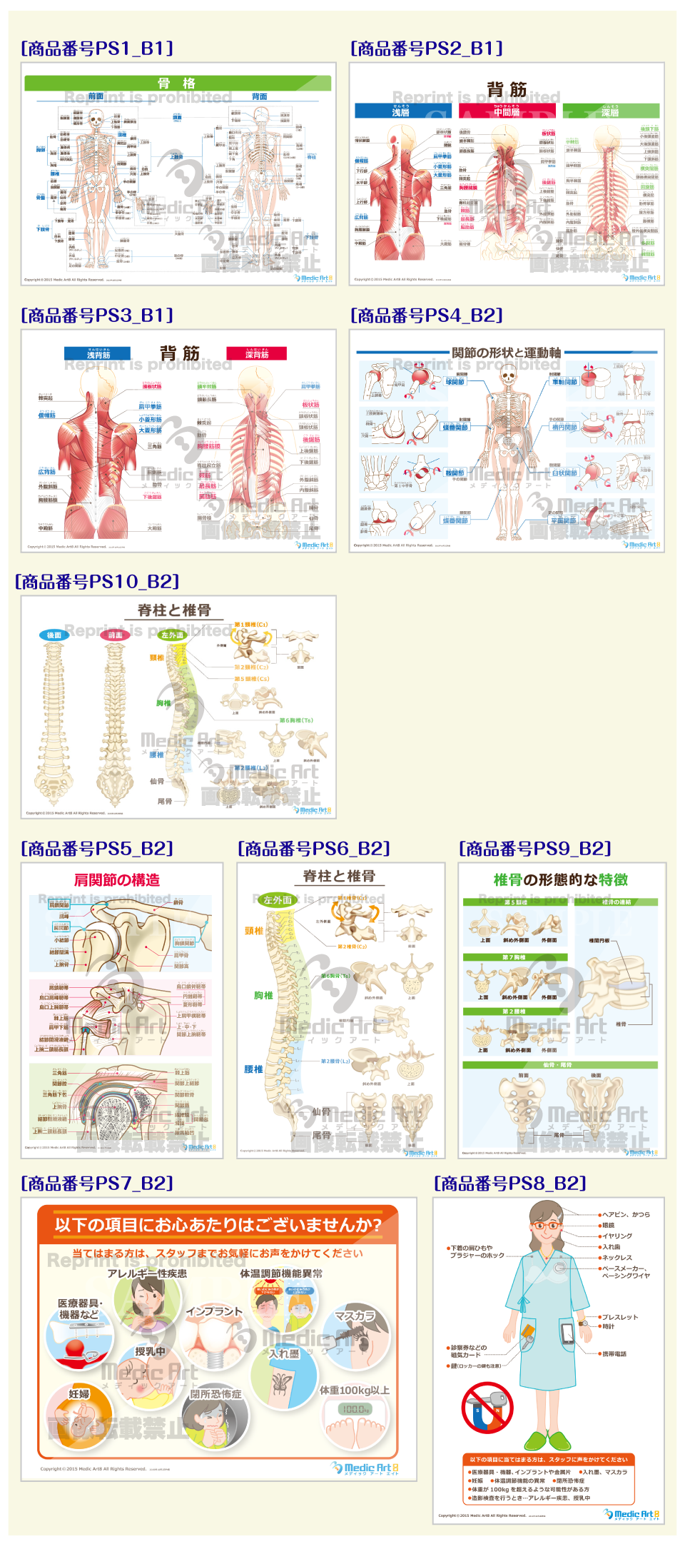 医療系広告代理店 Medic Art8は、Medic Artの素材を用いて、以下のようなポスターを販売しています。これらは一例になります。「説明用資材」のページをご覧になってください。