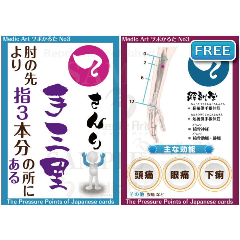 ツボをわかりやすくかるたにまとめた資材のサンプルになります。